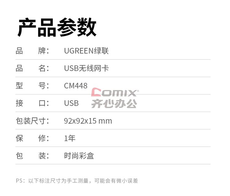 商品名称:绿联 20204 无线网卡 黑色 单位:个