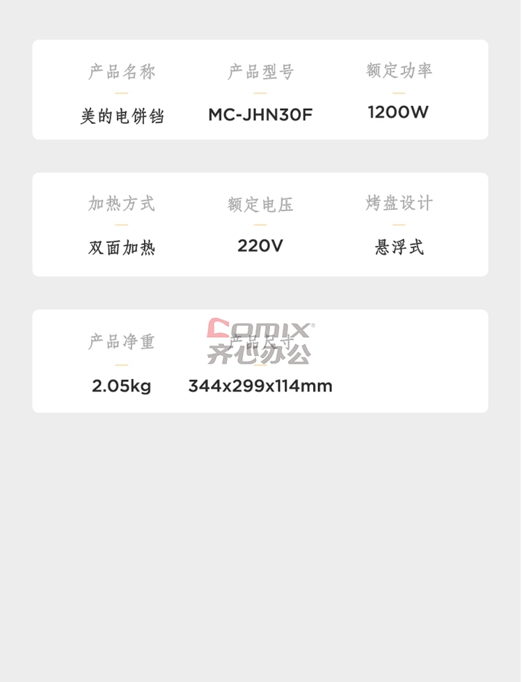 商品名称:美的 JHN30F 电饼铛 黑色 (单位:台)