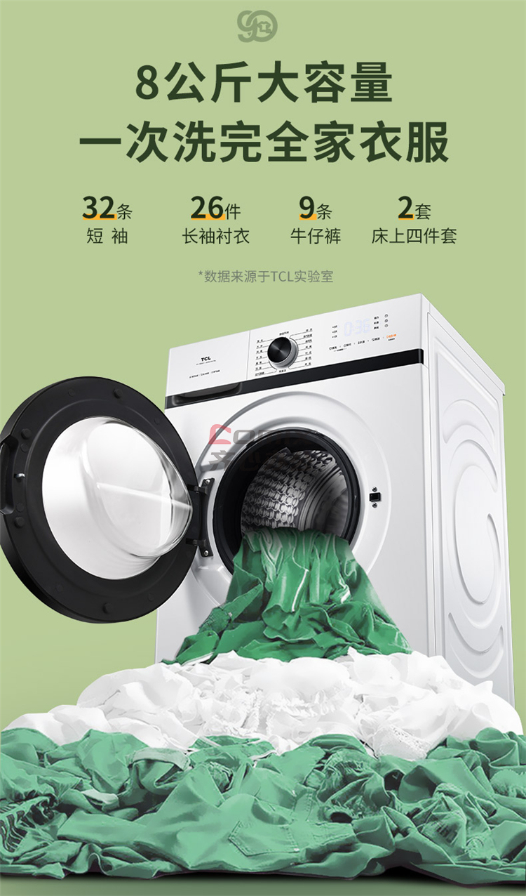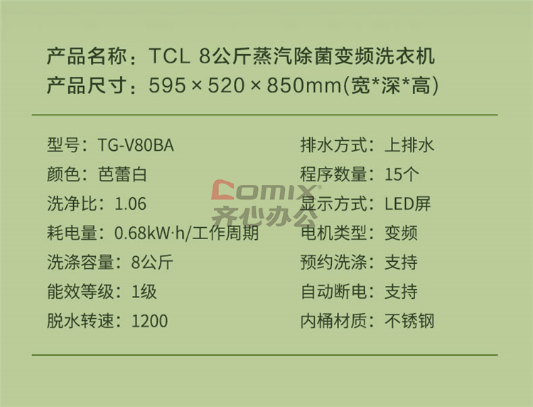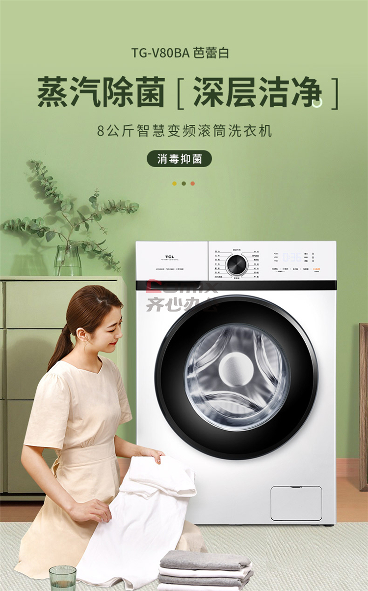 商品名称:TCL TG-V80BA 8公斤全自动滚筒洗衣机 芭蕾白 (单位:台)