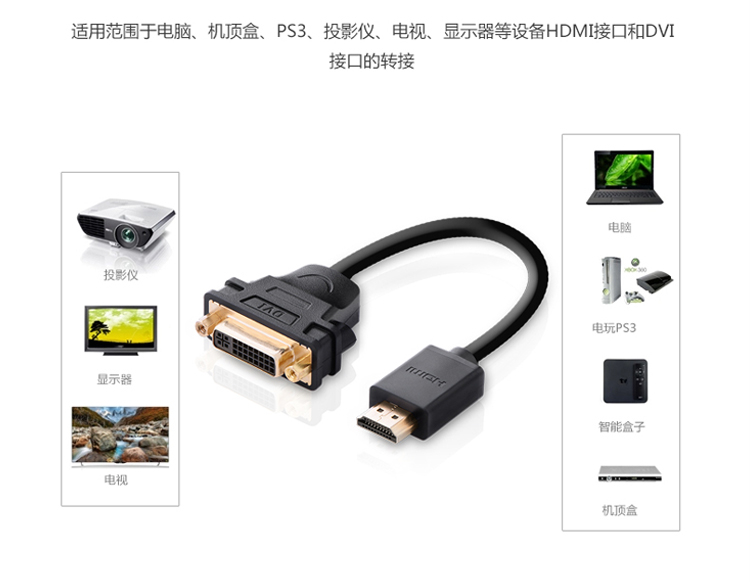 商品名称:绿联 HDMI公转DVI母转接头 HDMI线转DVI24+5/DVI-I高清转换头 (单位:条)