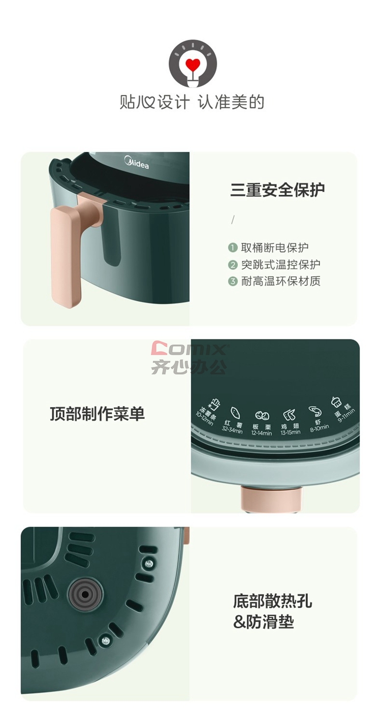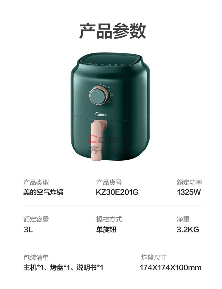 商品名称:美的(Midea) KZ30E3L 1325W 空气炸锅 深空蓝 单位:台