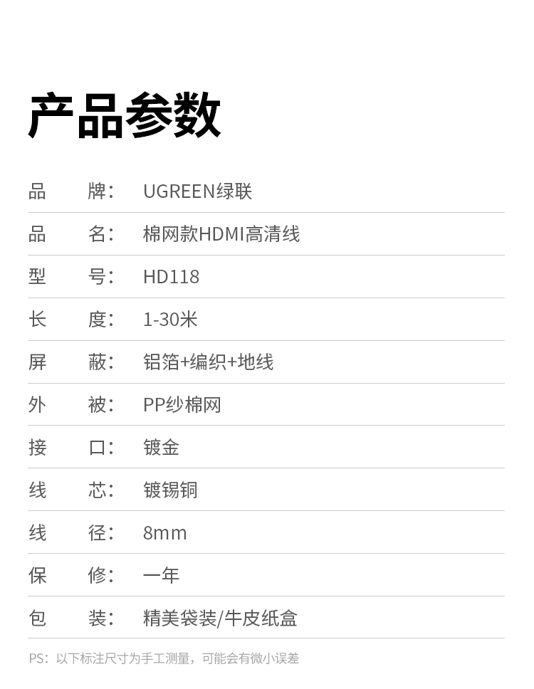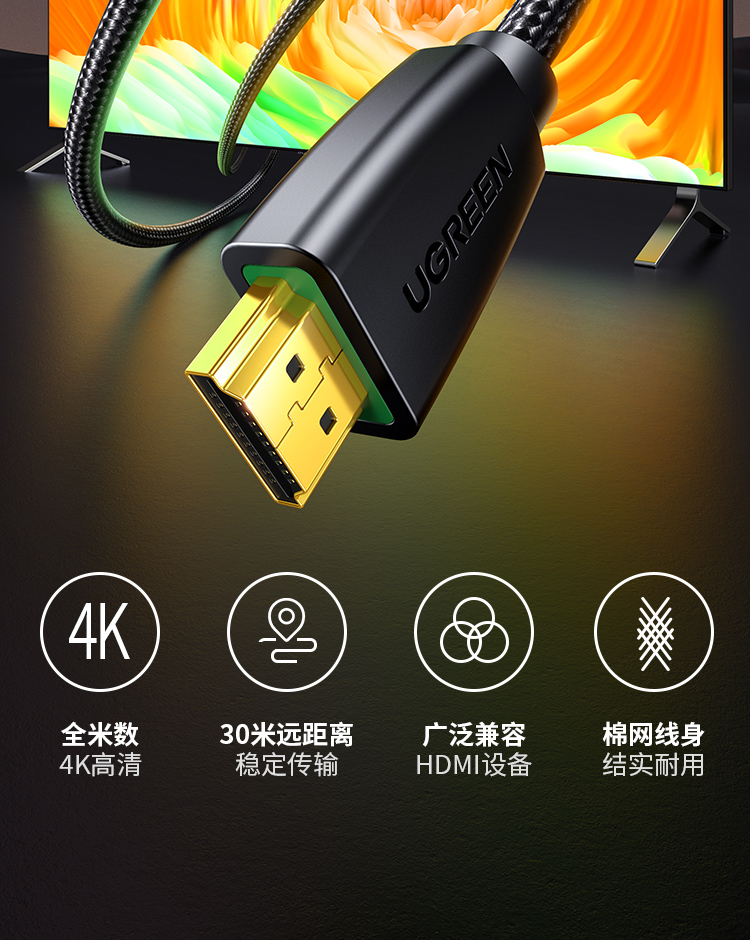 商品名称:绿联 40409 1.5米 HDMI线 黑色 单位:根