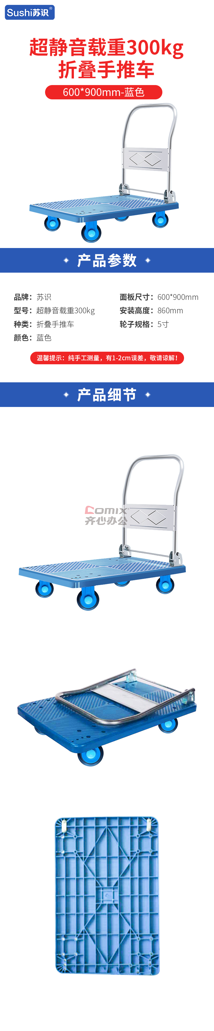 - 商品名称:苏识 600*900mm-蓝色 超静音载重300kg 折叠手推车 1.00 辆/个 (计价单位:个) 蓝色