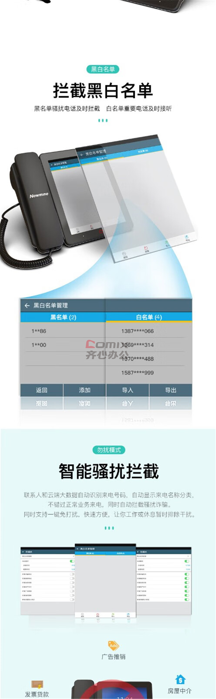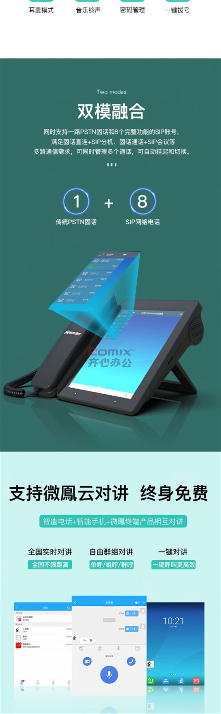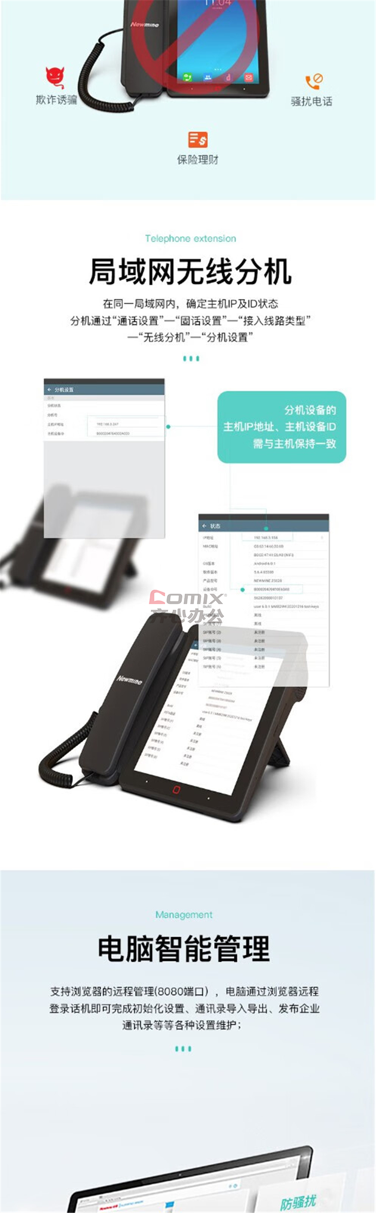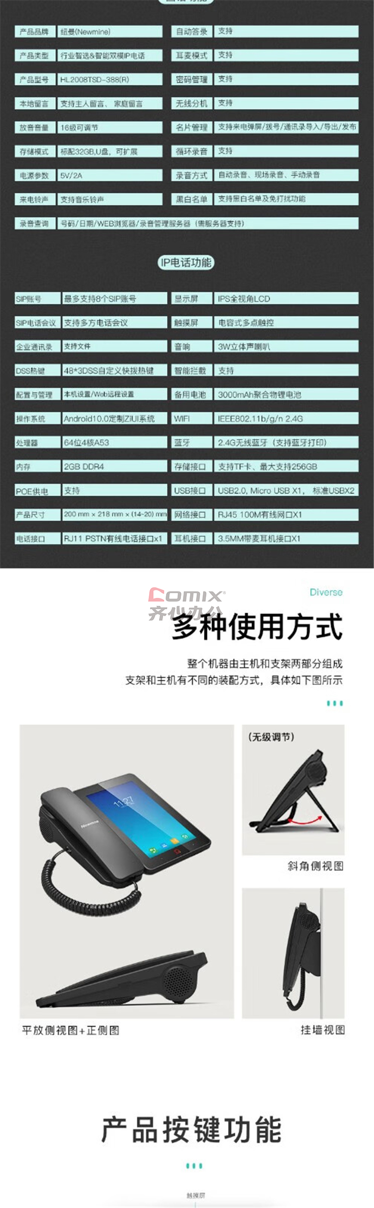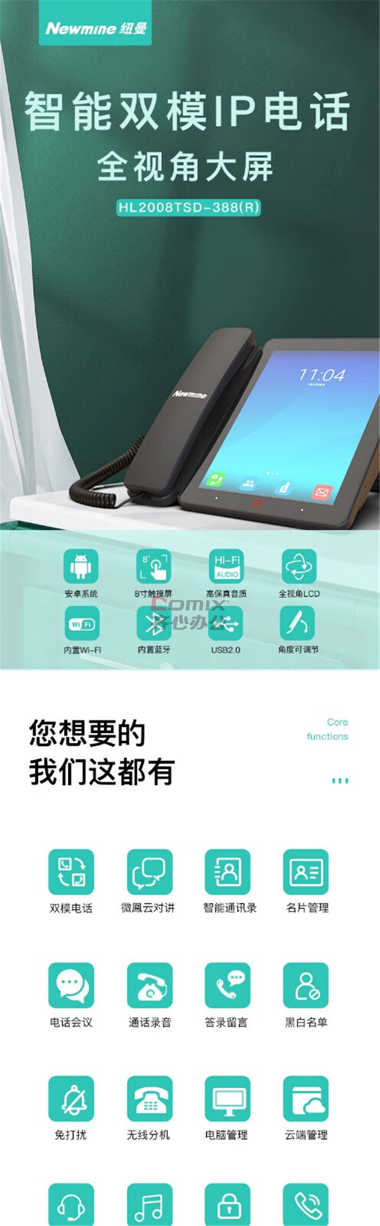 纽曼 HL2008TSD-388(R) IP双模智能电话 8寸彩屏 黑色(单位:台)