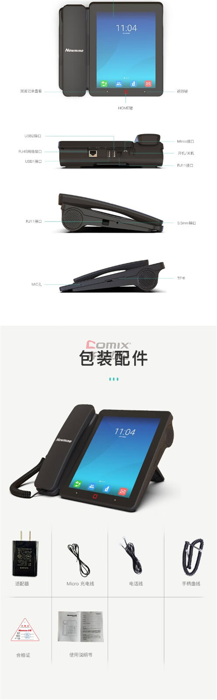 商品名称:纽曼 HL2008TSD-388(R) IP双模智能电话 8寸彩屏 黑色(单位:台)