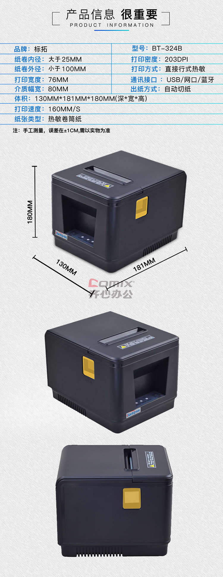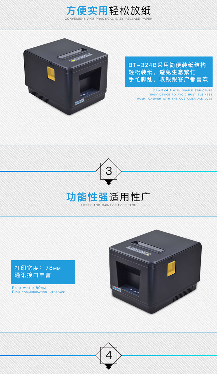 商品名称:标拓 BT-324B 热敏打印机 票据打印 网口版 黑色 单位:台