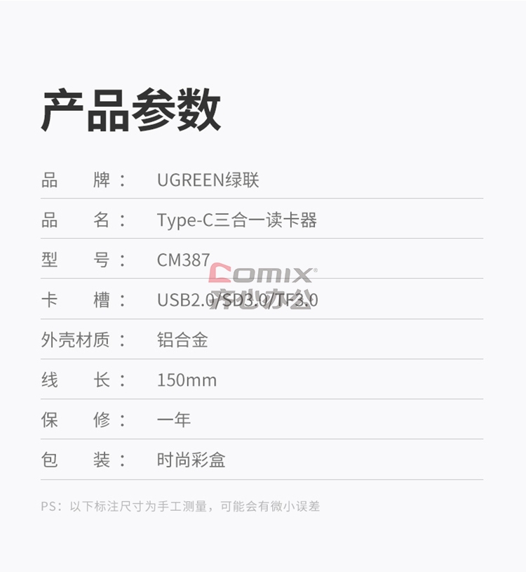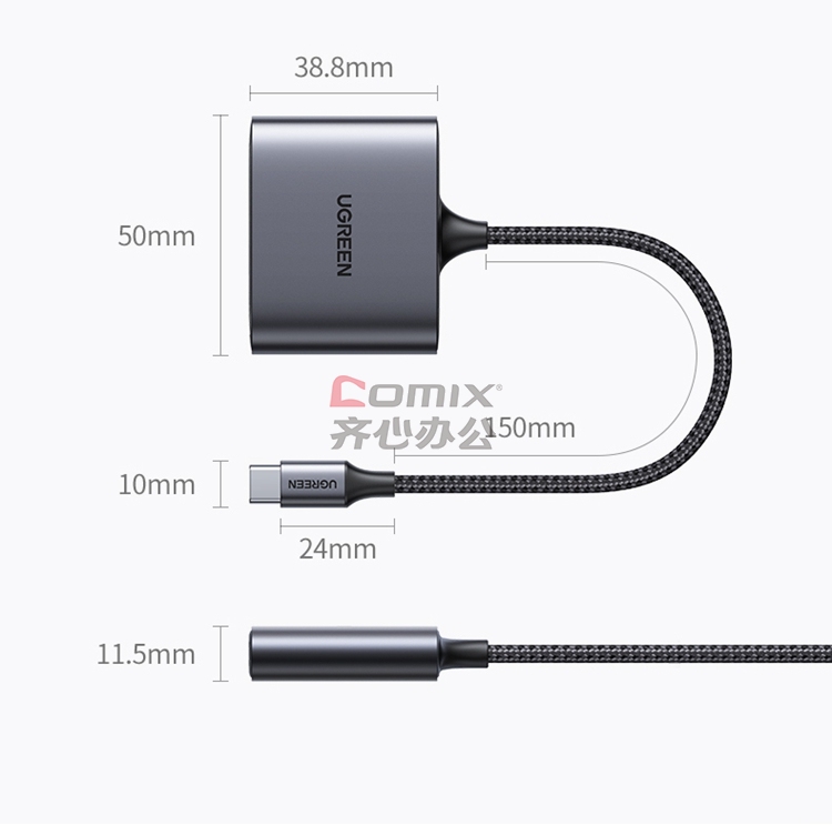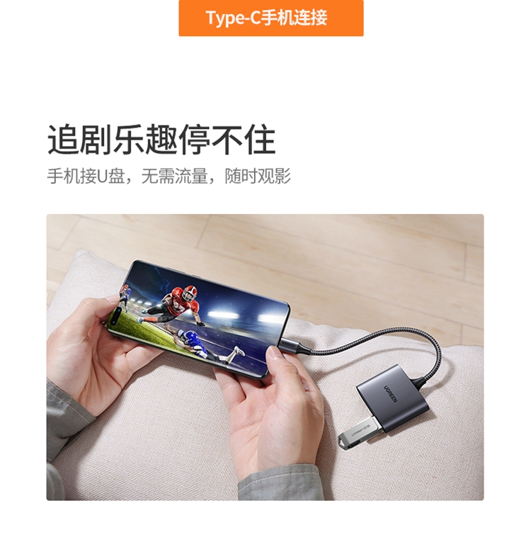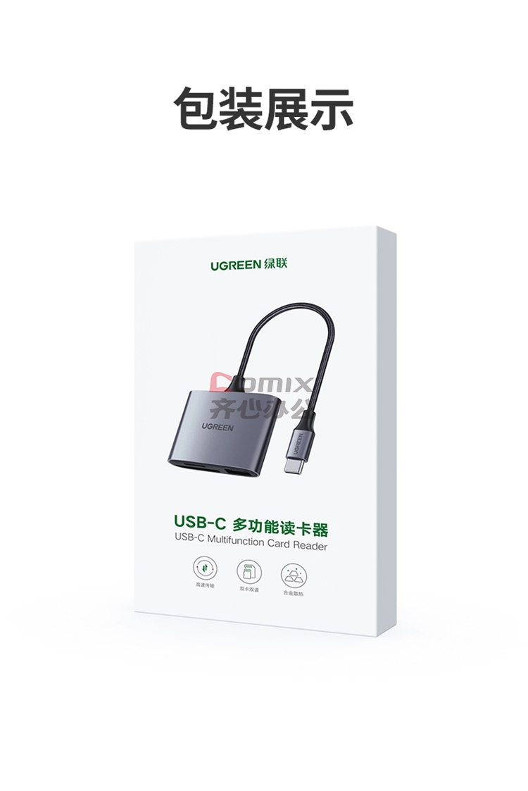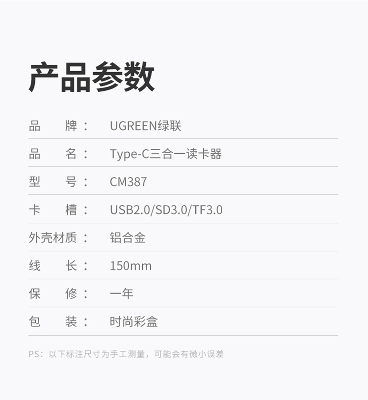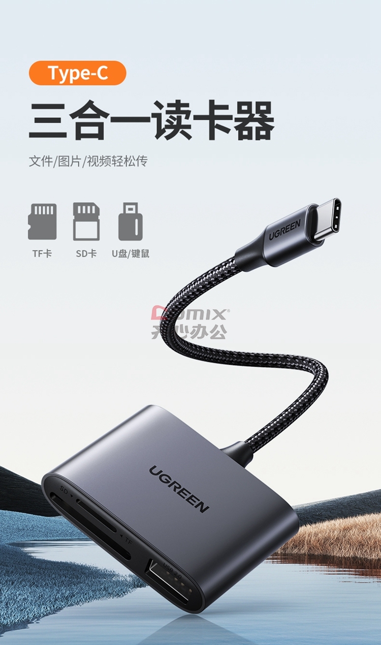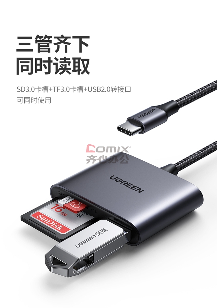 商品名称:绿联(UGREEN) 80798 Type-C三合一读卡器 铝合金 单位:个