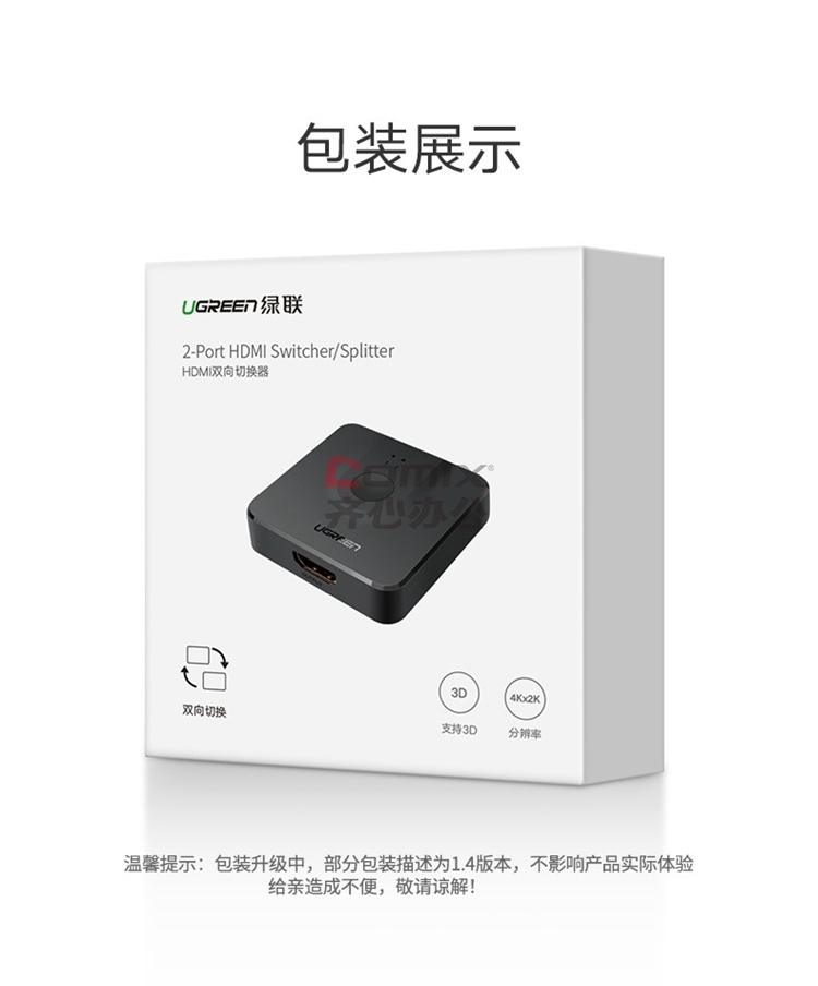 商品名称:绿联 50966 高清线 K高清视频分配器一分二 单位:个