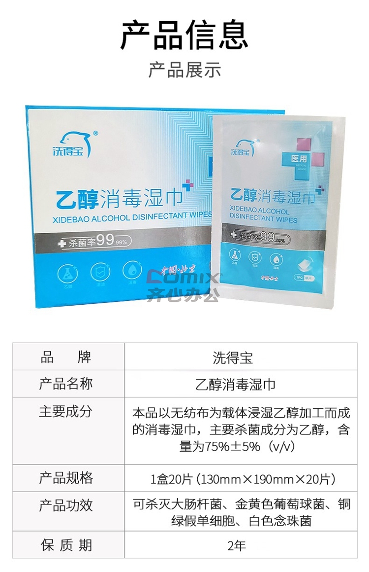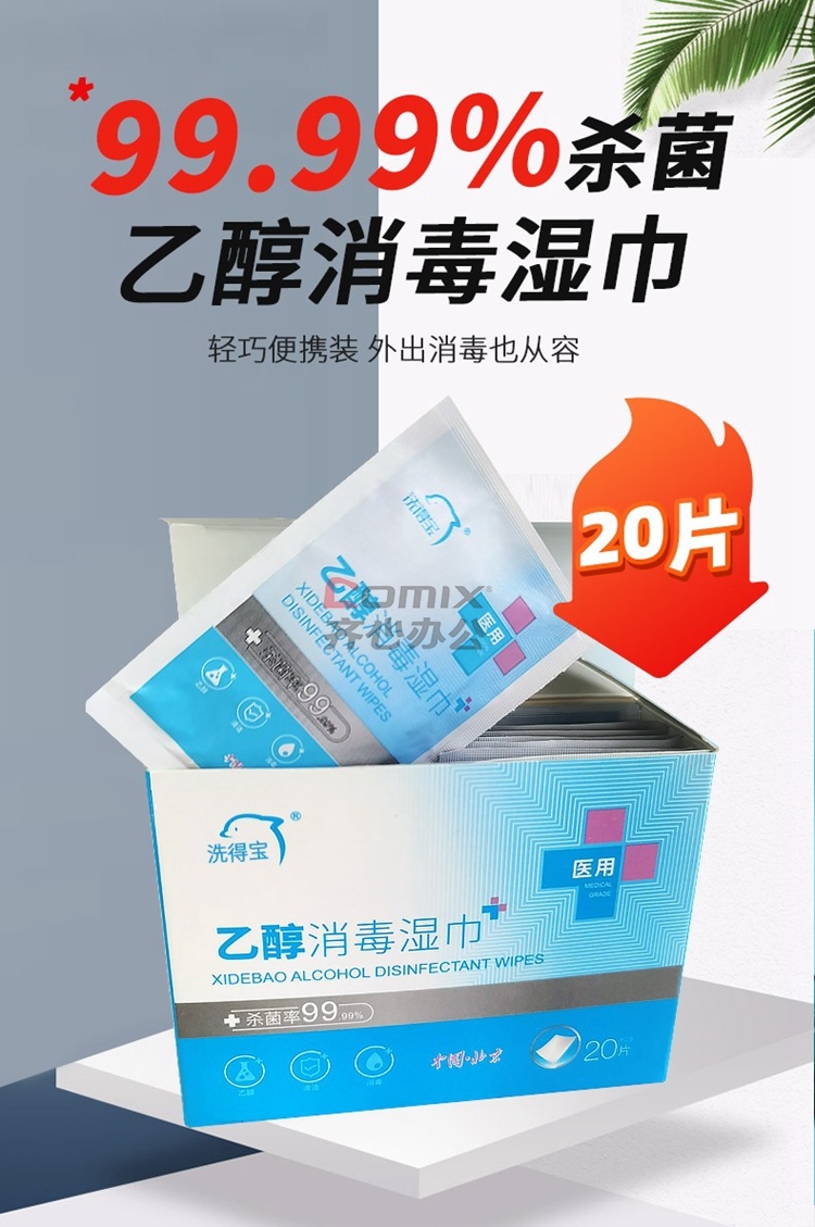 商品名称:洗得宝 20片/盒 75%酒精消毒湿巾 单片独立包装 便携式 单位:盒