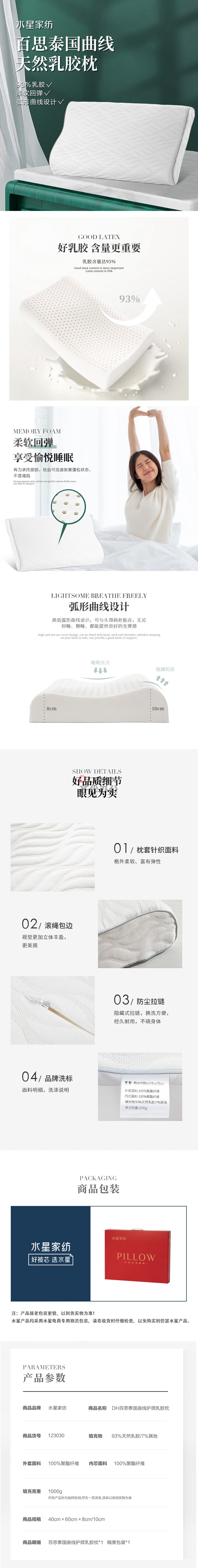 商品名称:水星家纺 123030 百思曲线天然乳胶枕 (单位:个)