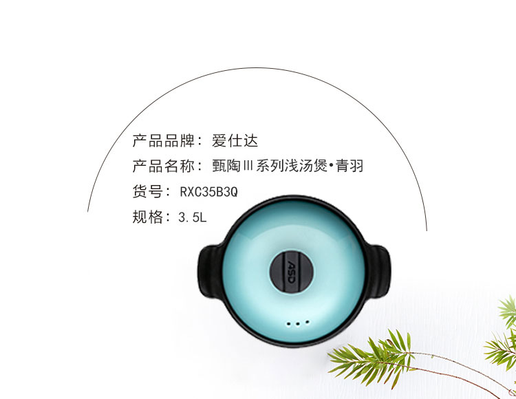 商品名称:爱仕达 RXC35B3Q 甄陶Ⅲ系列浅汤煲青羽 单位:个
