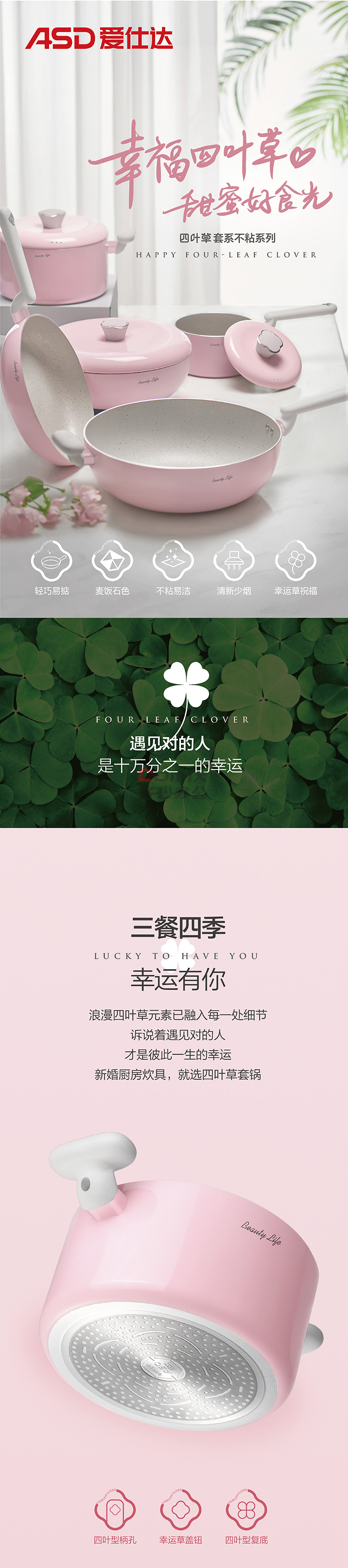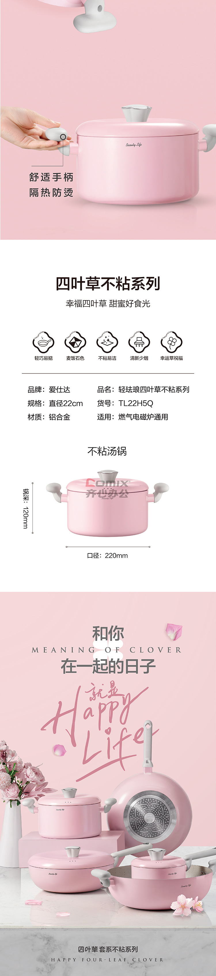 爱仕达 TL22H5Q 22cm 四叶草不粘汤锅 单位:口