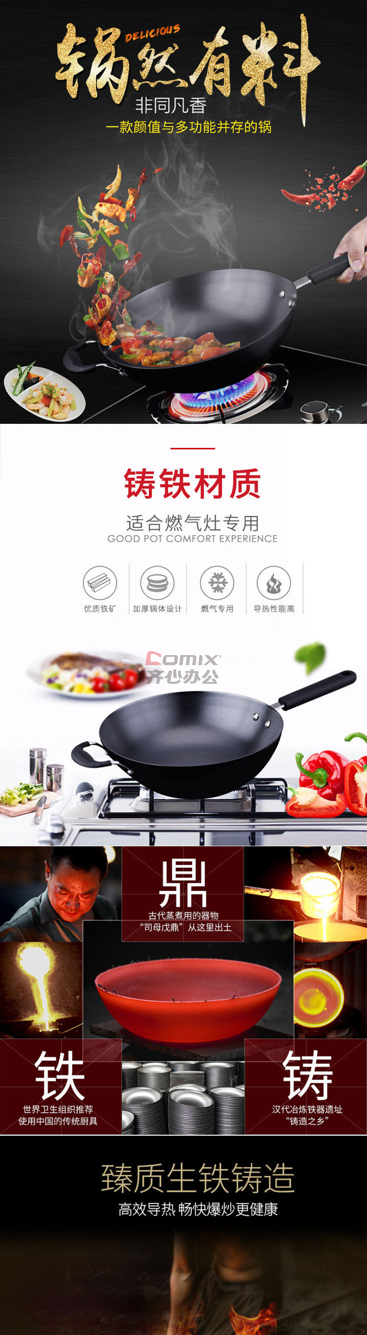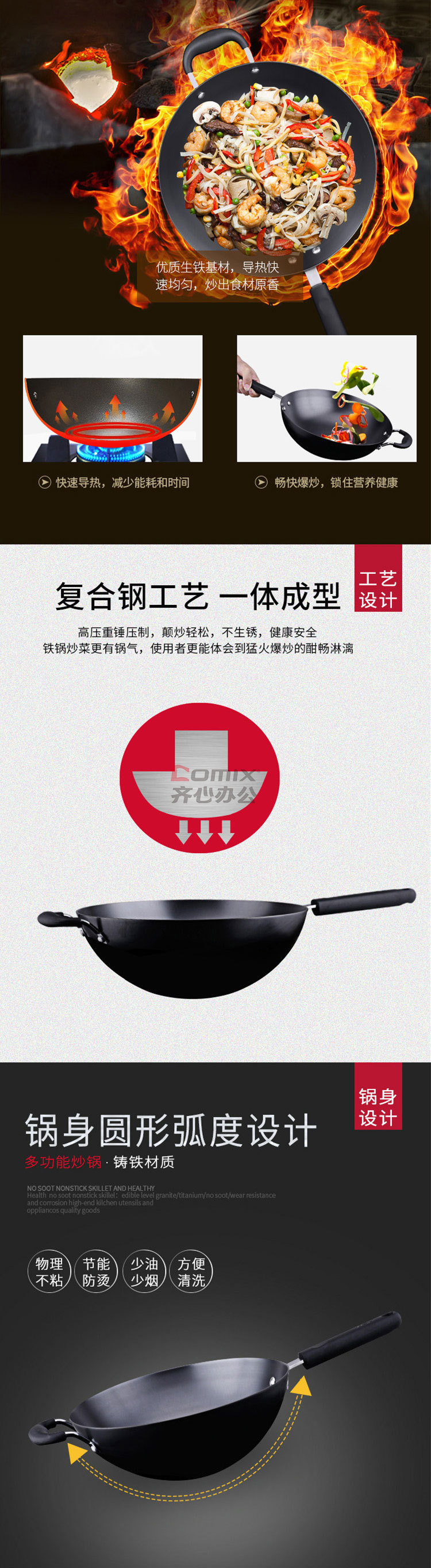 商品名称:爱仕达 CF32E2Q 32cm 不易锈铸铁无涂层炒锅 单位:口
