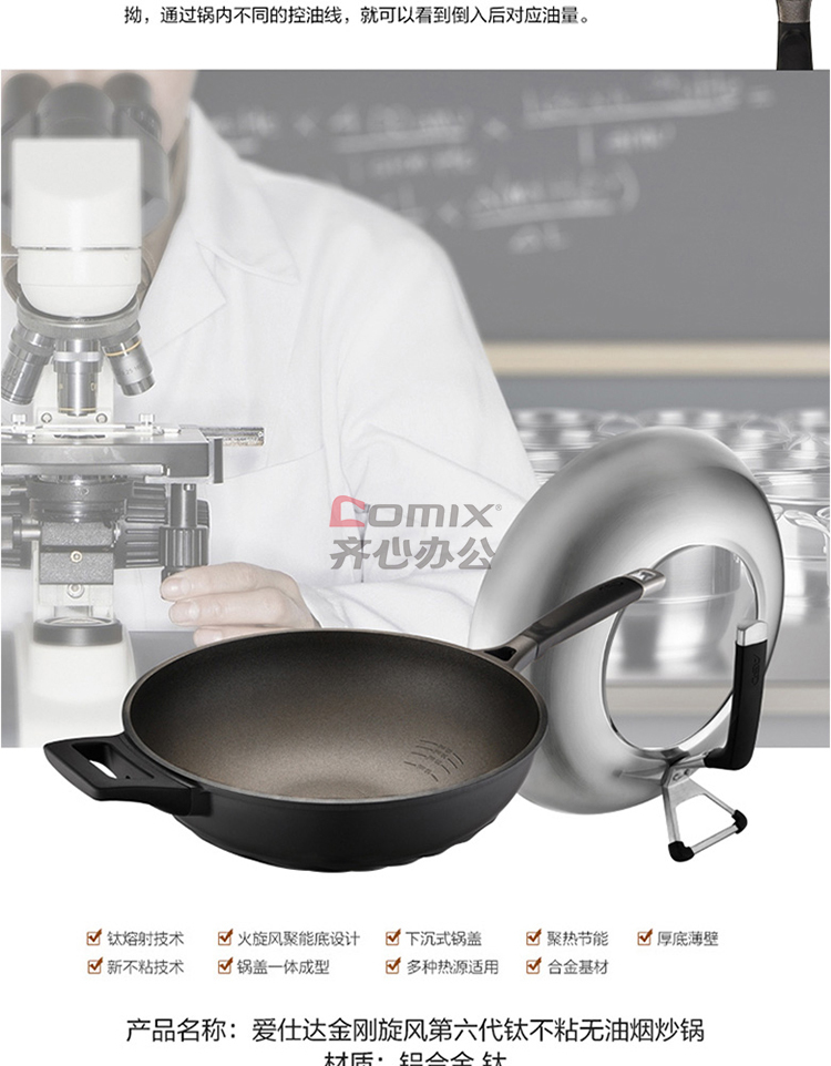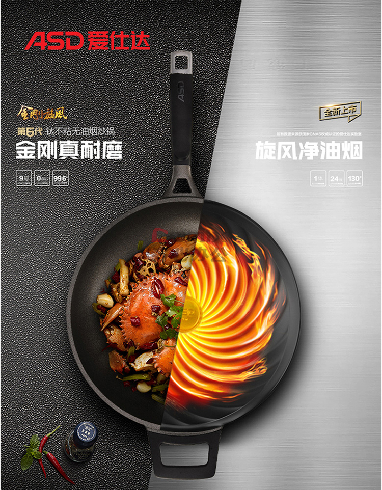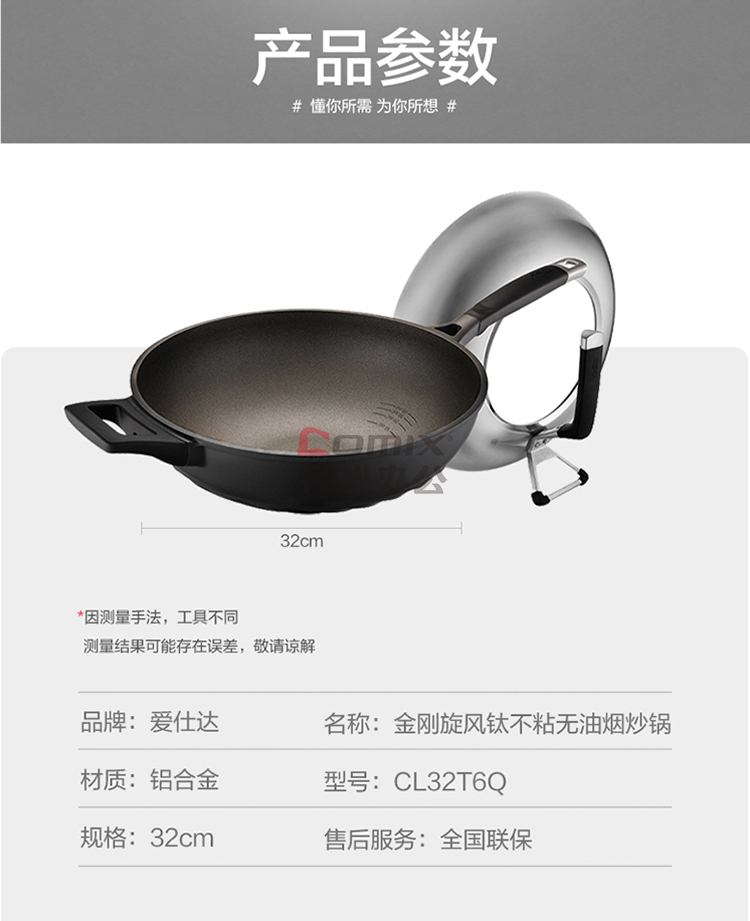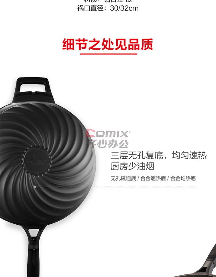 商品名称:爱仕达 CL32T6Q 32cm 第6代金刚旋风钛不粘无油烟炒锅 单位:口