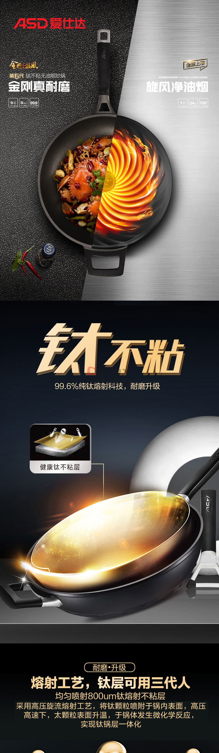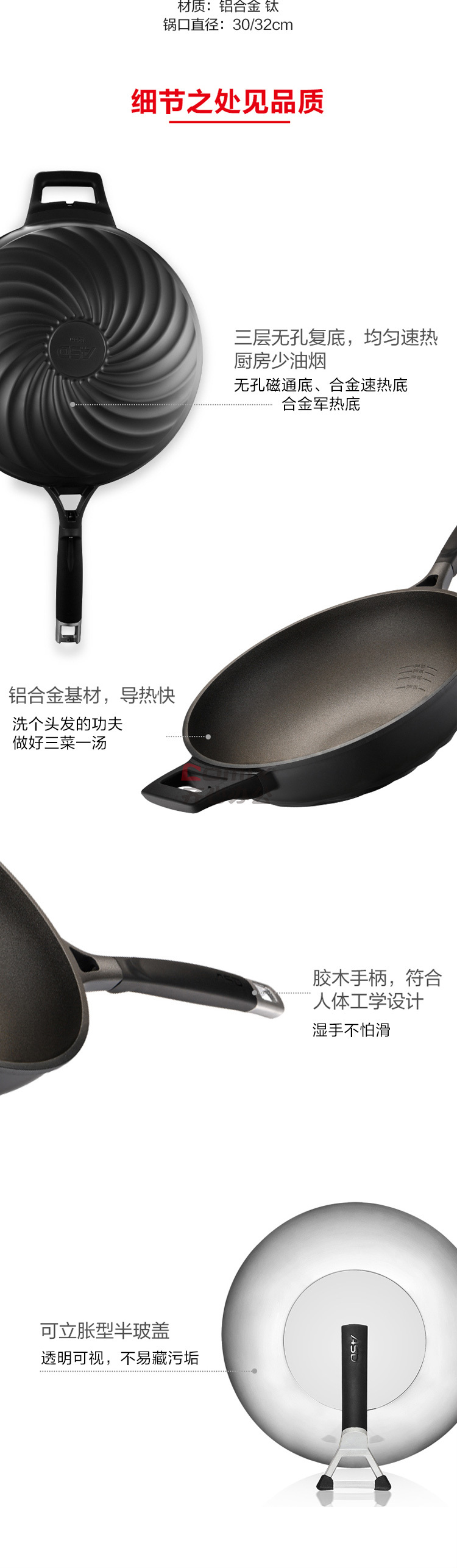 爱仕达 CL32T8Q 32cm 金刚旋风无油烟不粘炒锅 单位:口