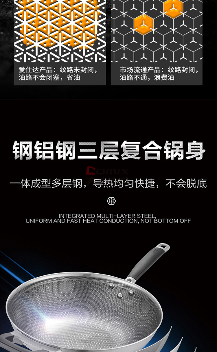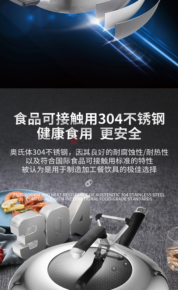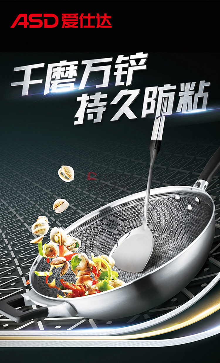 爱仕达 CC30E1Q 30cm 晶刚甲复合钢炒锅 单位:口