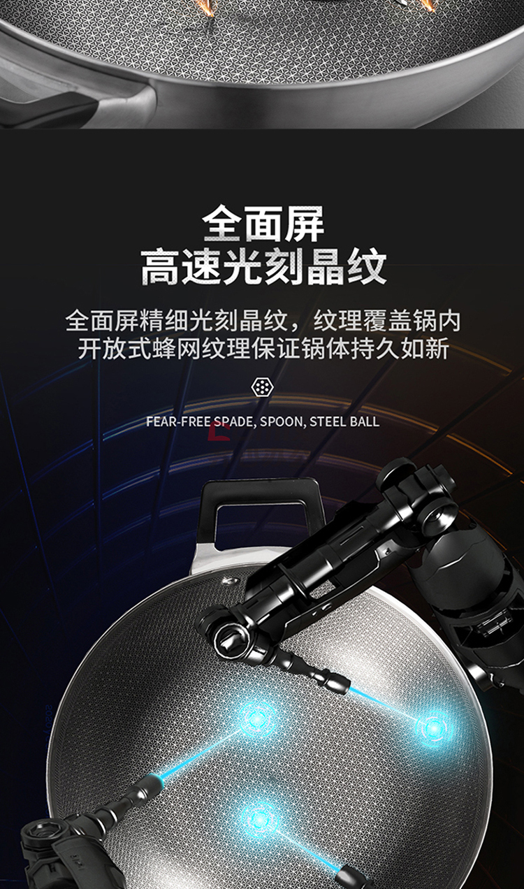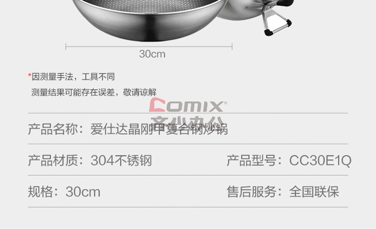 商品名称:爱仕达 CC30E1Q 30cm 晶刚甲复合钢炒锅 单位:口
