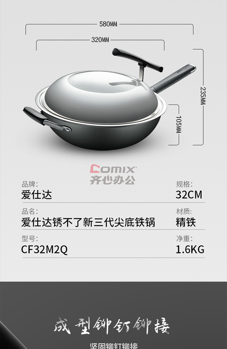 商品名称:爱仕达 CF32M2Q 锈不了新三代旋风炒锅 单位:口