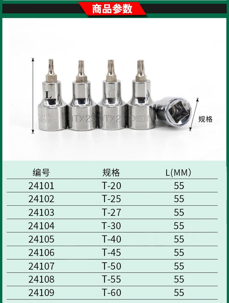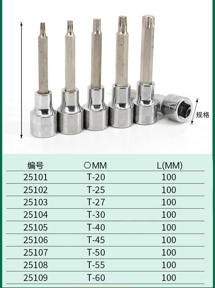 商品名称:世达/SATA 25203 12.5MM系列100MM长六角旋具套筒6MM (单位:套)