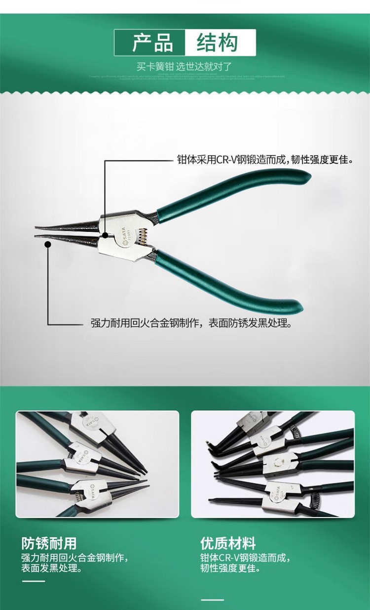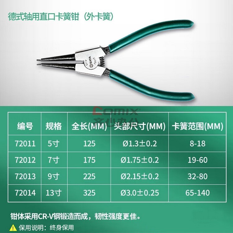 商品名称:世达/SATA 72013 德式轴用直口卡簧钳9" (单位:把)