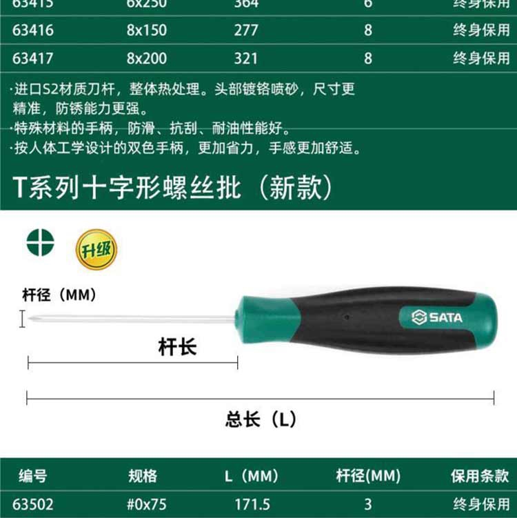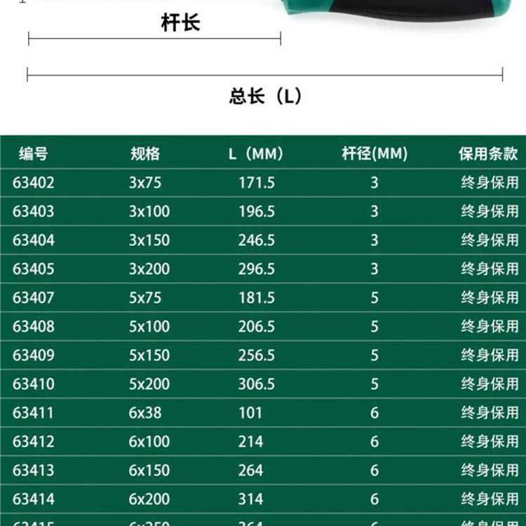 商品名称:世达/SATA 63407 T系列一字形螺丝批5x75MM (单位:个)