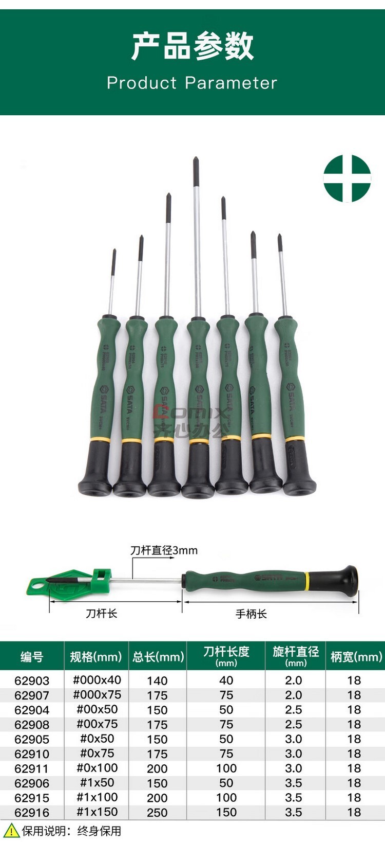 商品名称:世达/SATA 62907 十字微型螺丝批#000x75MM (单位:把)
