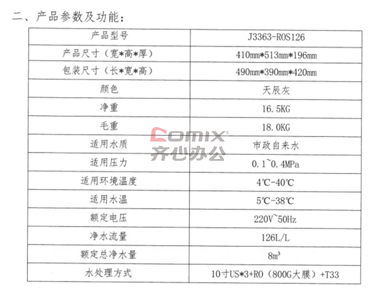 商品名称:安吉尔 J3363-ROS126 800加仑净水器 黑色(单位:台)