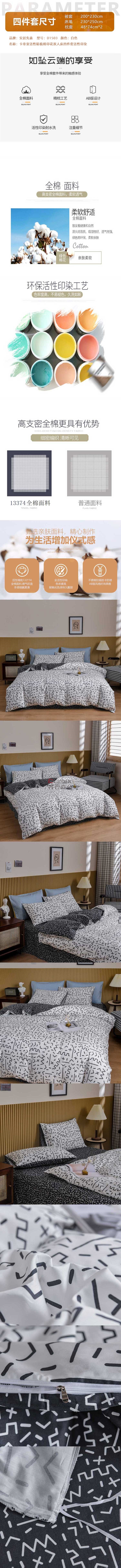 安居先森 D1503四件套 卡帝亚活性精梳棉印花双人床四件套活性印染 (计价单位:套) 白色
