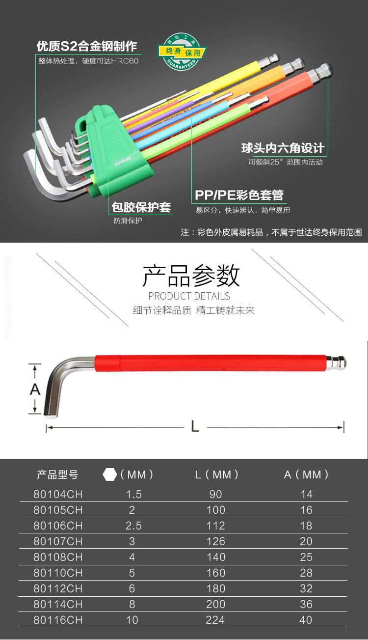 商品名称:世达 09101CH 内六角扳手组套(单位:套)