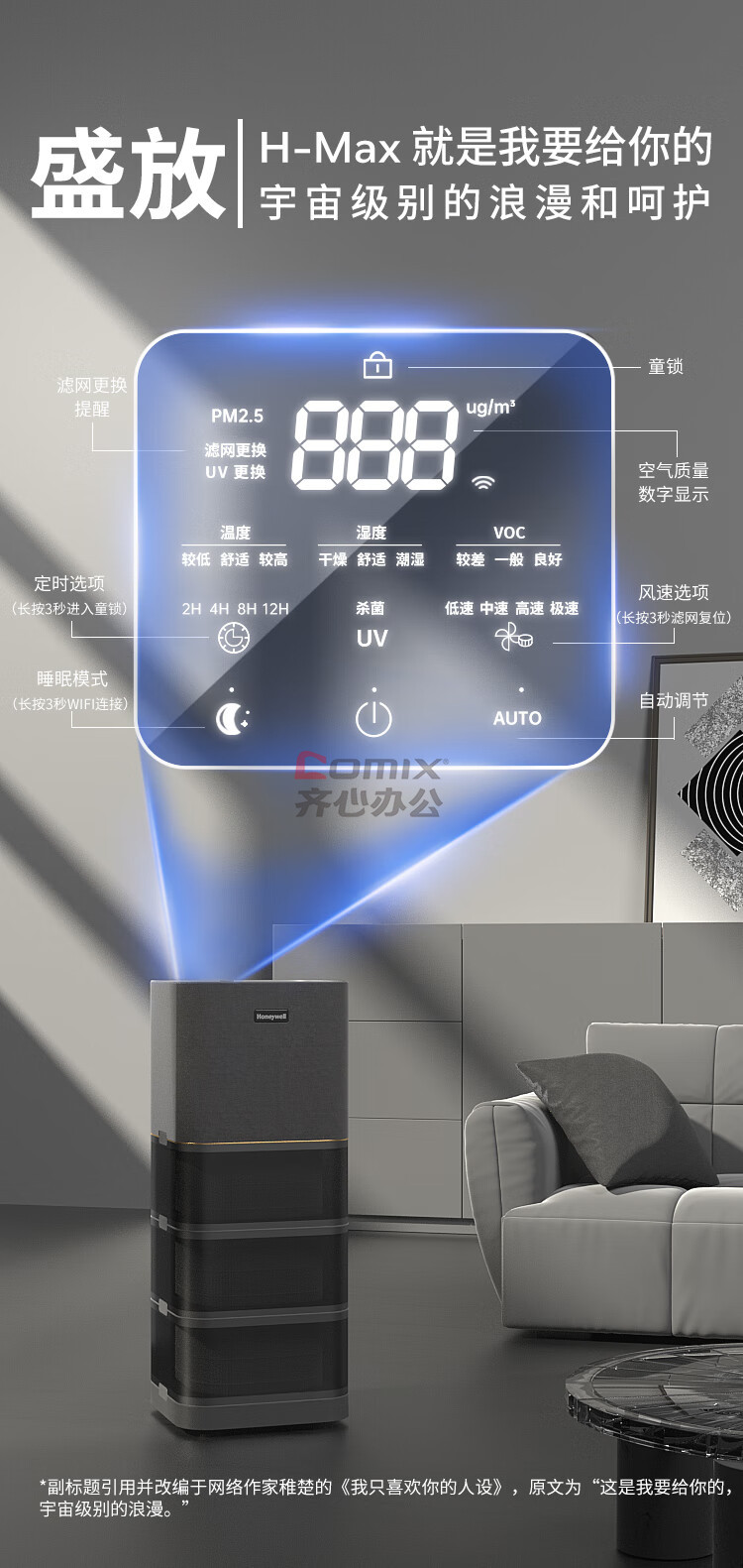 霍尼韦尔 KJ1000F-P22B UV消毒 空气消毒机 净化器 黑色 单位:台