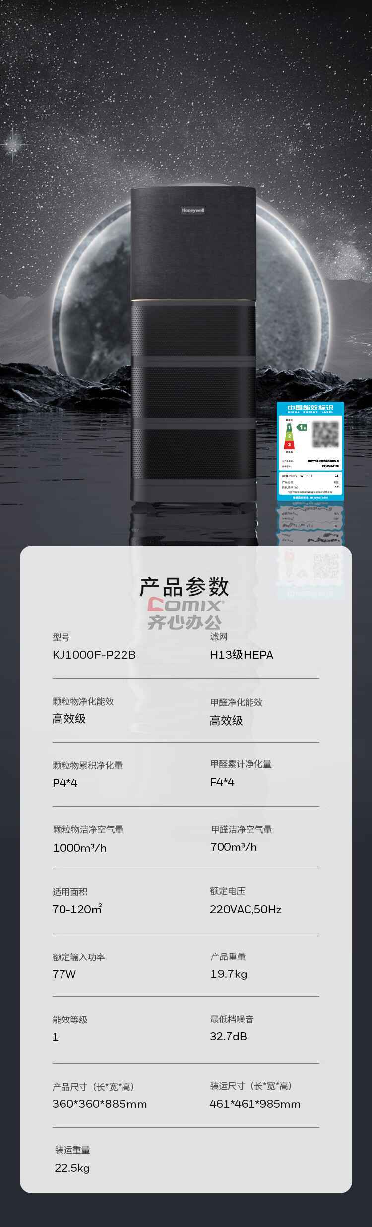 商品名称:霍尼韦尔 KJ1000F-P22B UV消毒 空气消毒机 净化器 黑色 单位:台