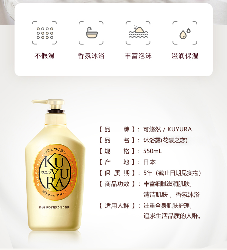 商品名称:可悠然(KUYURA) 花漾之恋 550ml 沐浴露 (计价单位:瓶)