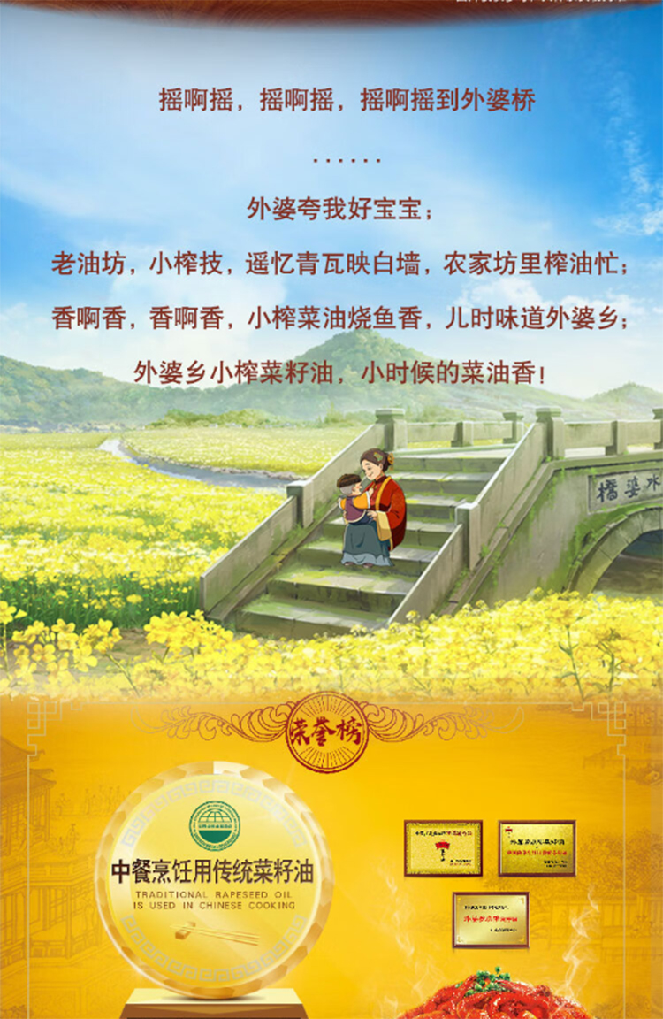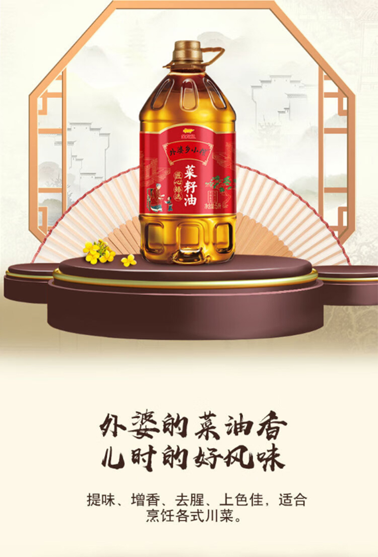 商品名称:金龙鱼 5L*1瓶 外婆乡小榨匠心臻选菜籽油(非转基因)(单位:瓶)