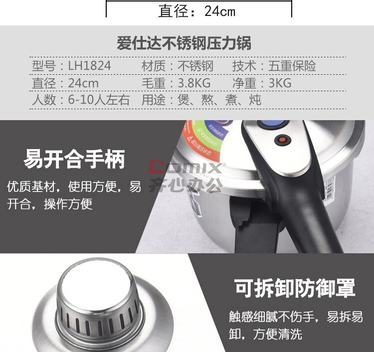 商品名称:爱仕达 智芯三层钢压力锅 24cm LH1824 单位:口