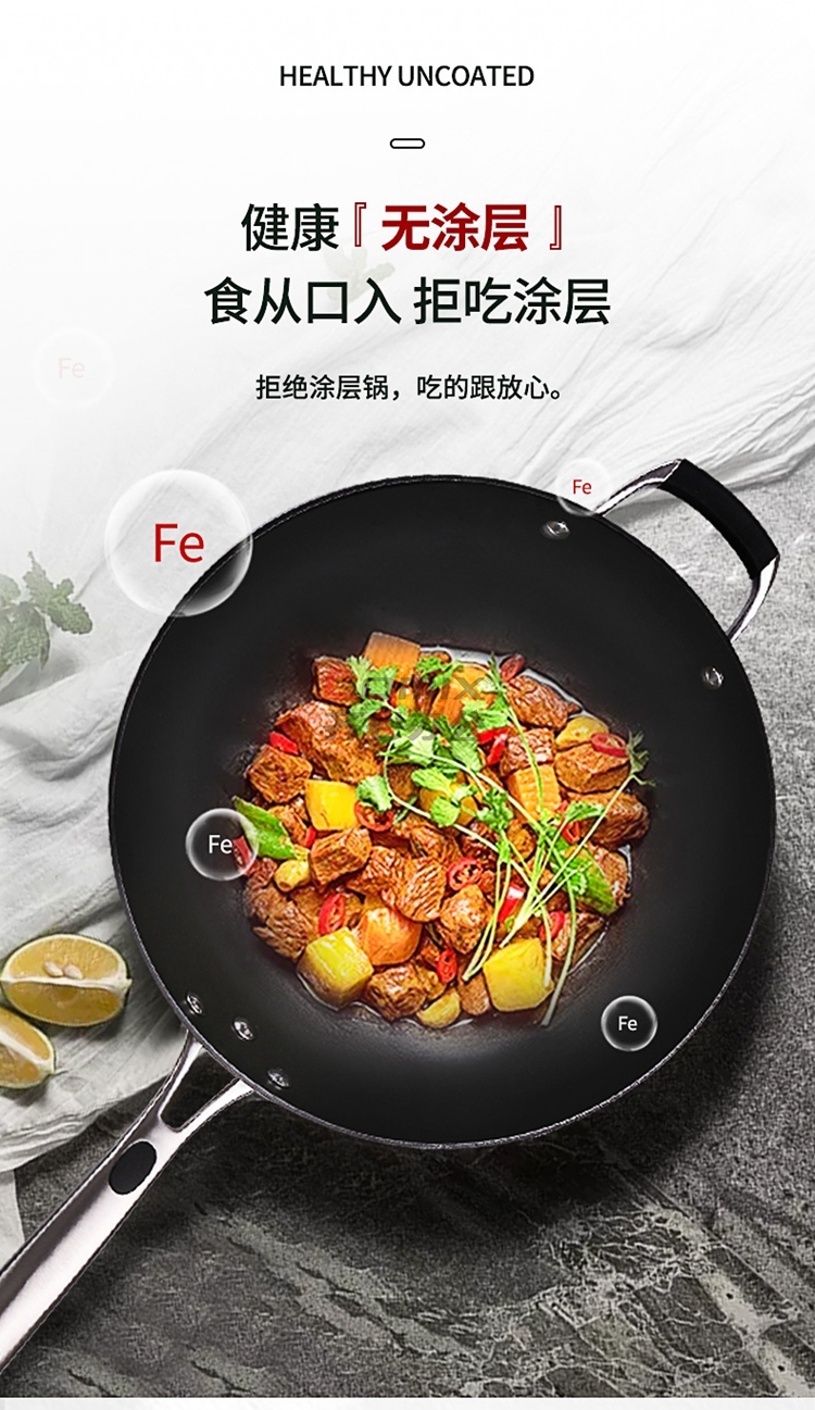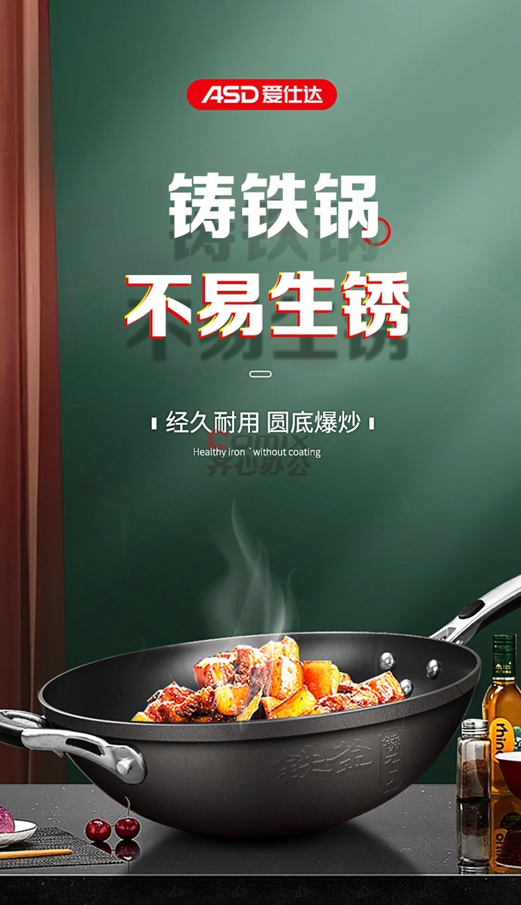 爱仕达 CF34E2Q 34cm 不易锈铸铁无涂层炒锅 单位:口