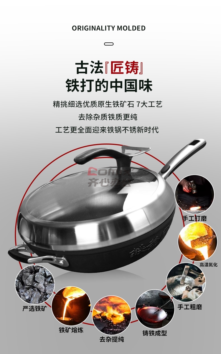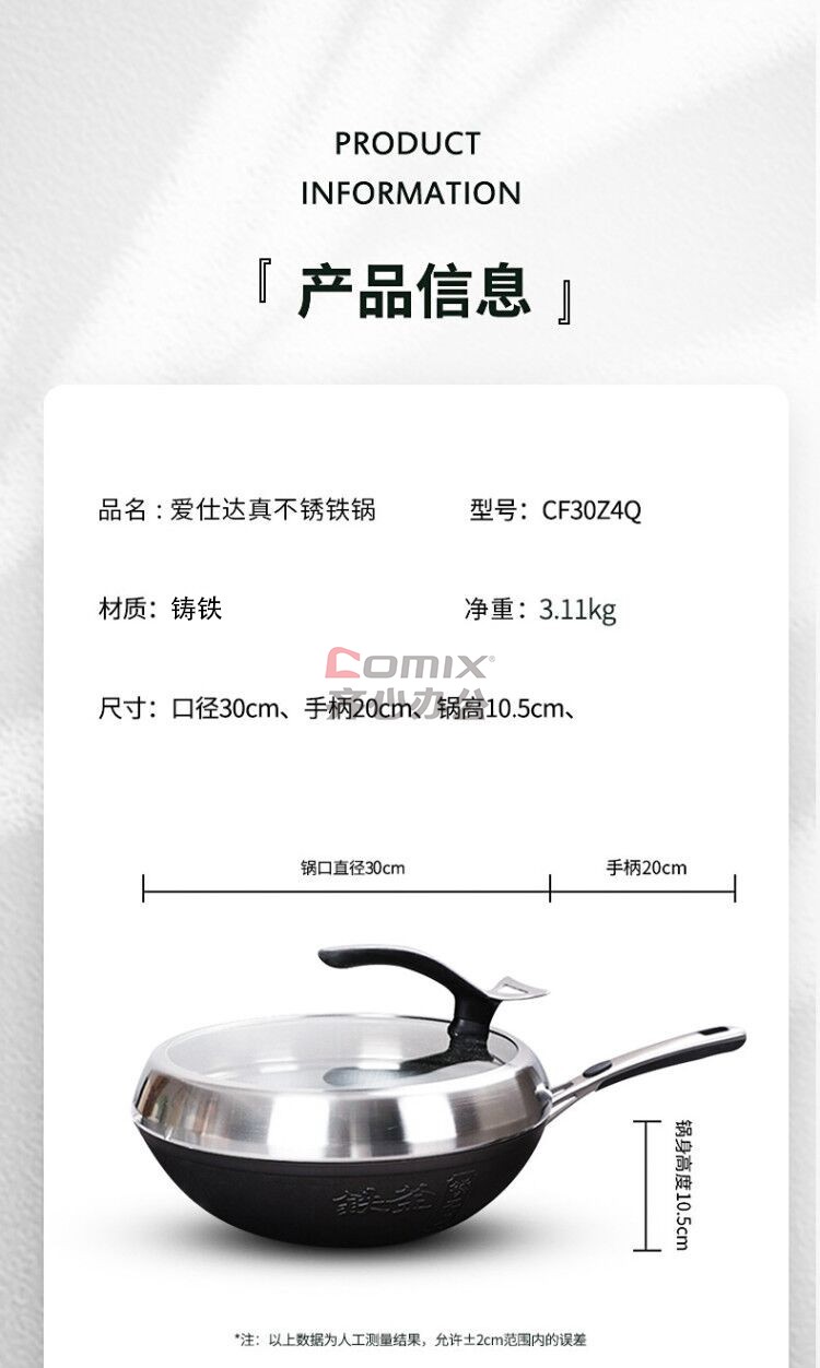 商品名称:爱仕达 锈不了·铸铁旋风老铁匠炒锅 30cm CF30Z4Q 单位:口