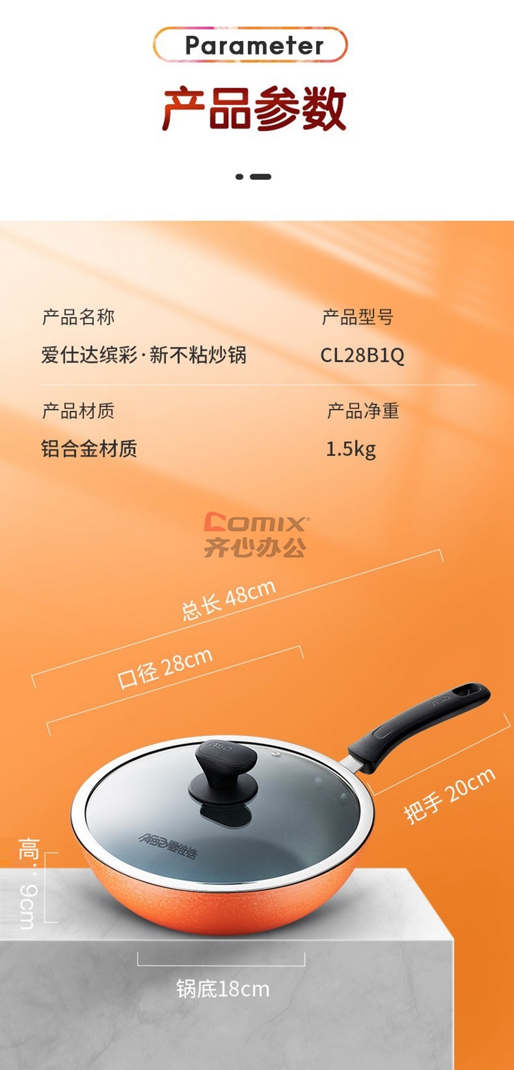 商品名称:爱仕达 缤彩·新不粘小炒锅 28cm CL28B1Q 单位:口