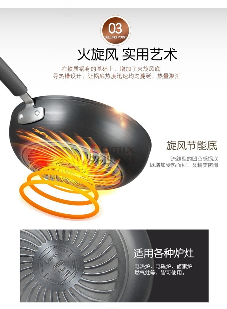 爱仕达 CF34E2Q 34cm 不易锈铸铁无涂层炒锅 单位:口