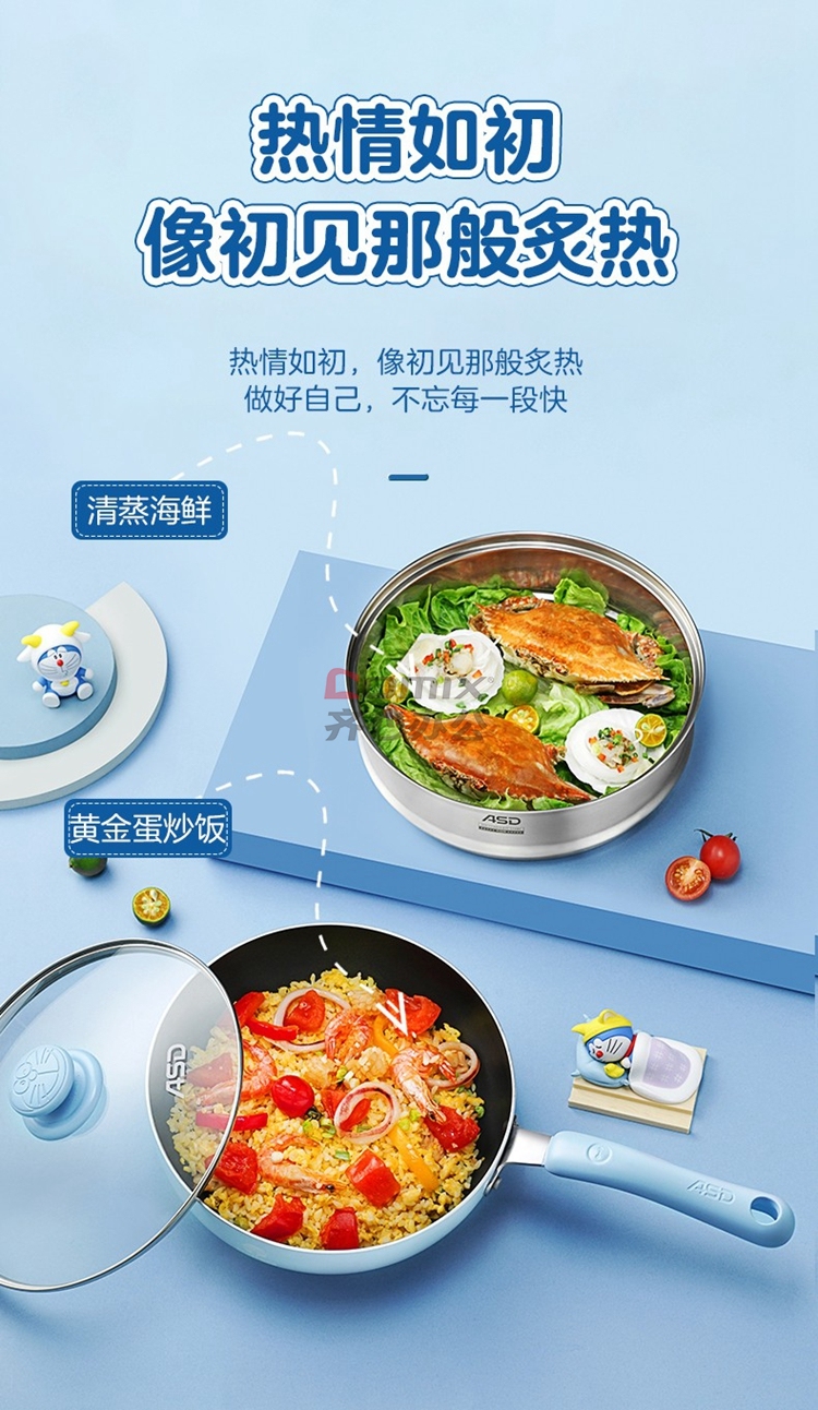 爱仕达 魔法厨房系列不粘多用锅平底锅煎锅(带蒸格蒸屉蒸笼)24cm JL24A1Q 单位:口