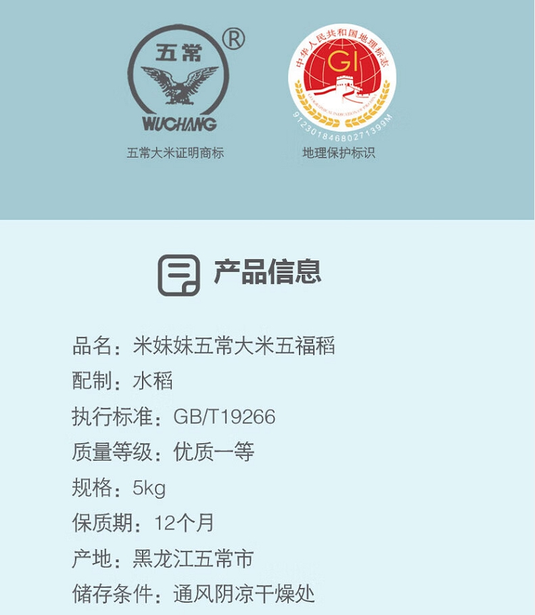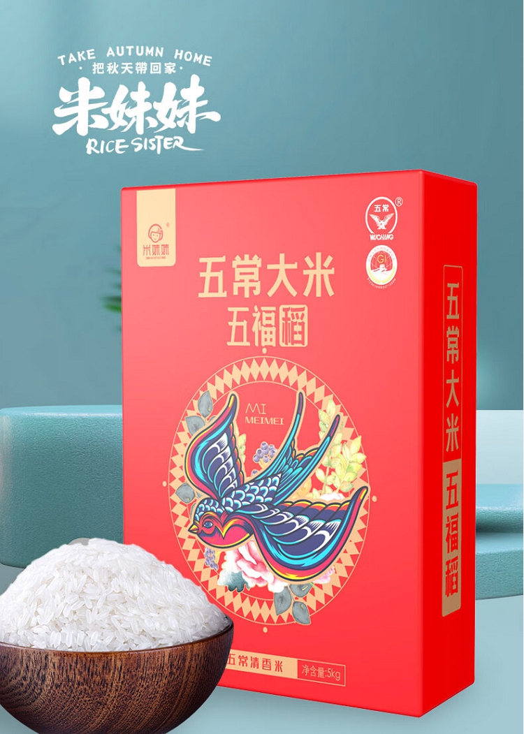 商品名称:米妹妹五福稻五常大米礼盒5kg