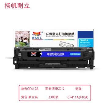 - 商品名称:扬帆耐立 兼容CF412A硒鼓(鼓粉一体)商专版带芯片黄色 单支装(适用惠普HP M477FDW M477FNW M452dw M452nw M452dn) 打印页数:2300