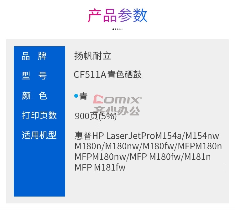 - 商品名称:扬帆耐立 兼容CF511A硒鼓(鼓粉一体)商专版带芯片青色 单支装(适用惠普HP LaserJetProM154a M154nw M180n M180nw M180fw) 打印页数:900