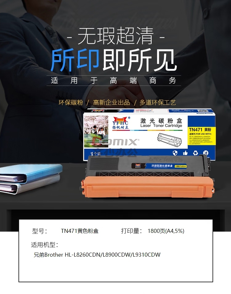 - 商品名称:扬帆耐立 兼容TN471粉盒商专版黄色 单支装(适用兄弟Brother HL-L8260CDN/L8900CDW/L9310CDW) 打印页数:1800