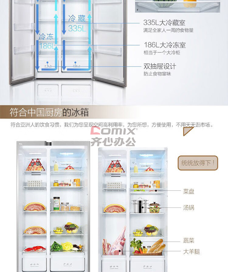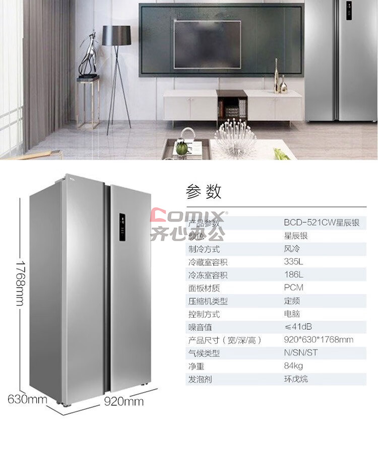 商品名称:tcl BCD-521CW 星辰银风冷 双开门电冰箱 521升 单位:台