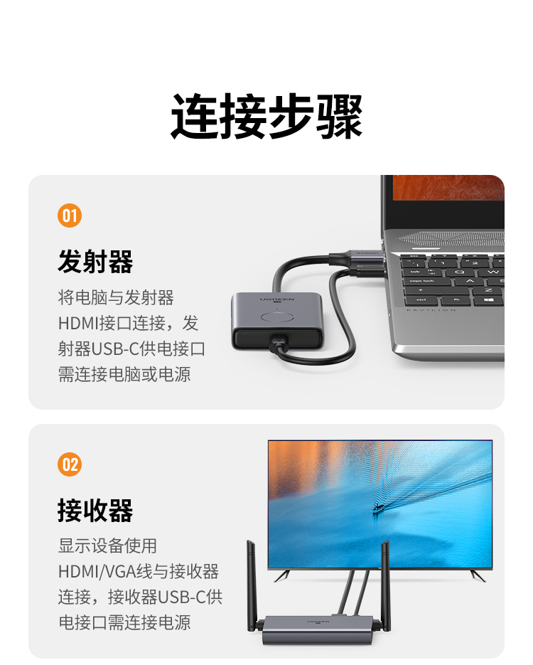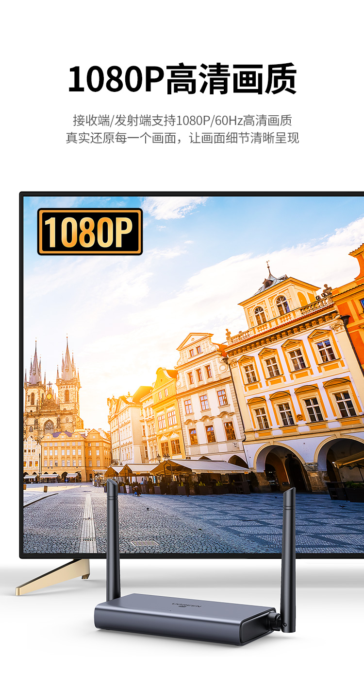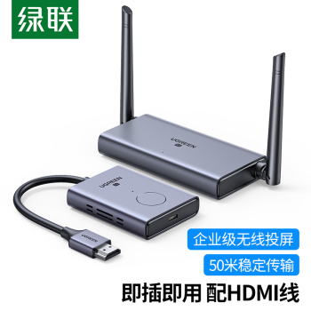 绿联 50633 HDMI无线投屏器 高清办公会议家用同屏器 适用笔记本电脑台式机连接电视显示器投影仪 50米传输器 单位:个
