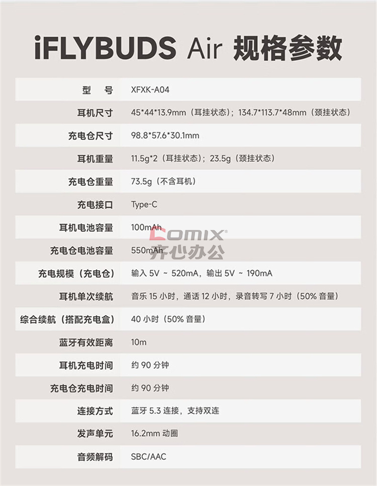 商品名称:科大讯飞 iFLYBUDS Air 蓝牙耳机 单位:个