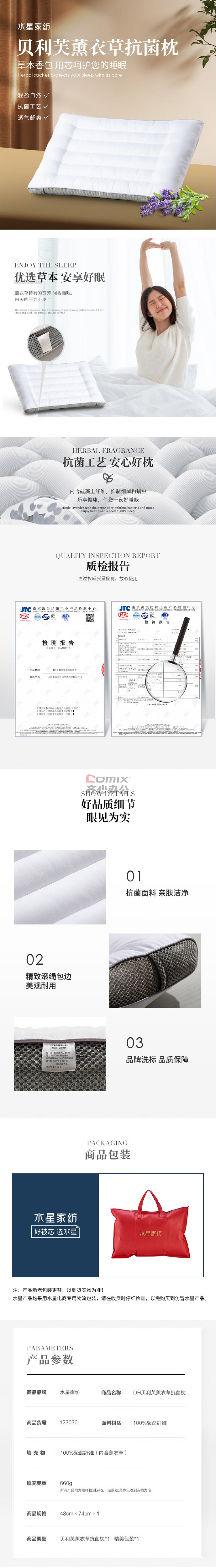 商品名称:水星家纺 74cm*48cm DH贝利芙薰衣草抗菌枕 白色 单位:个