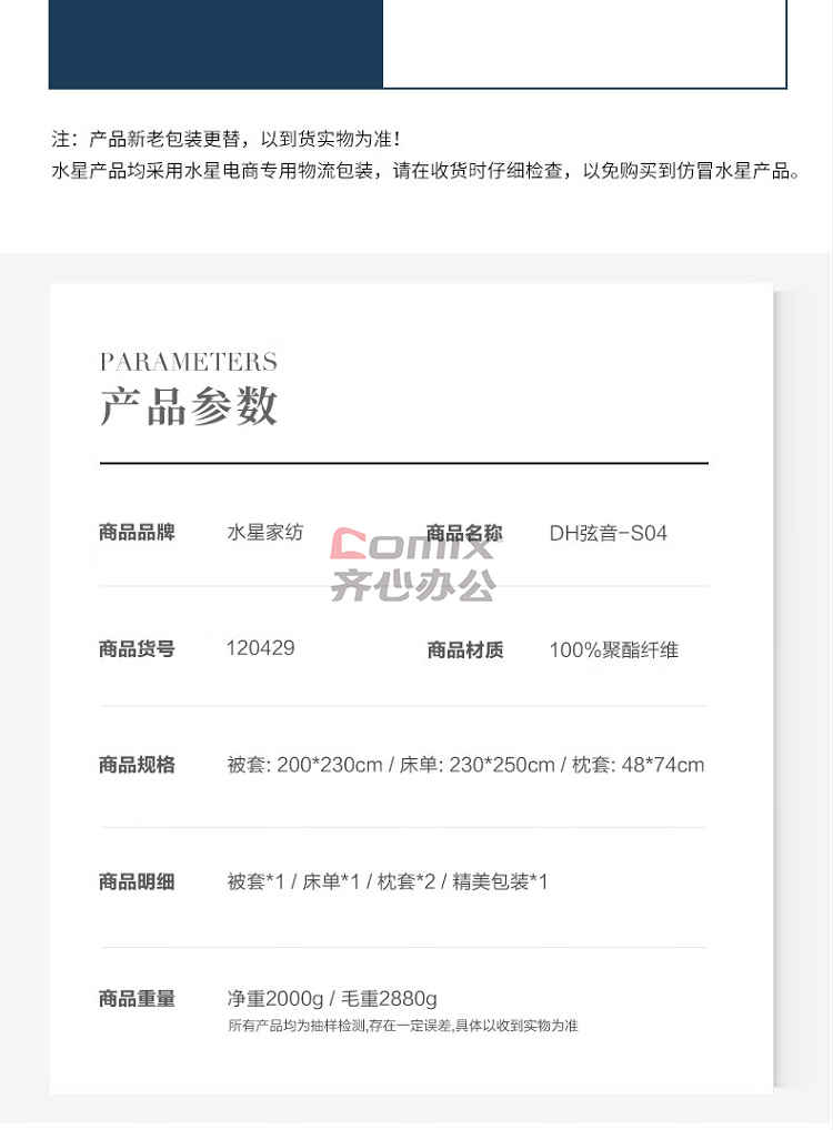 商品名称:水星家纺 120429 全涤磨毛四件套DH舷音 (单位:套)