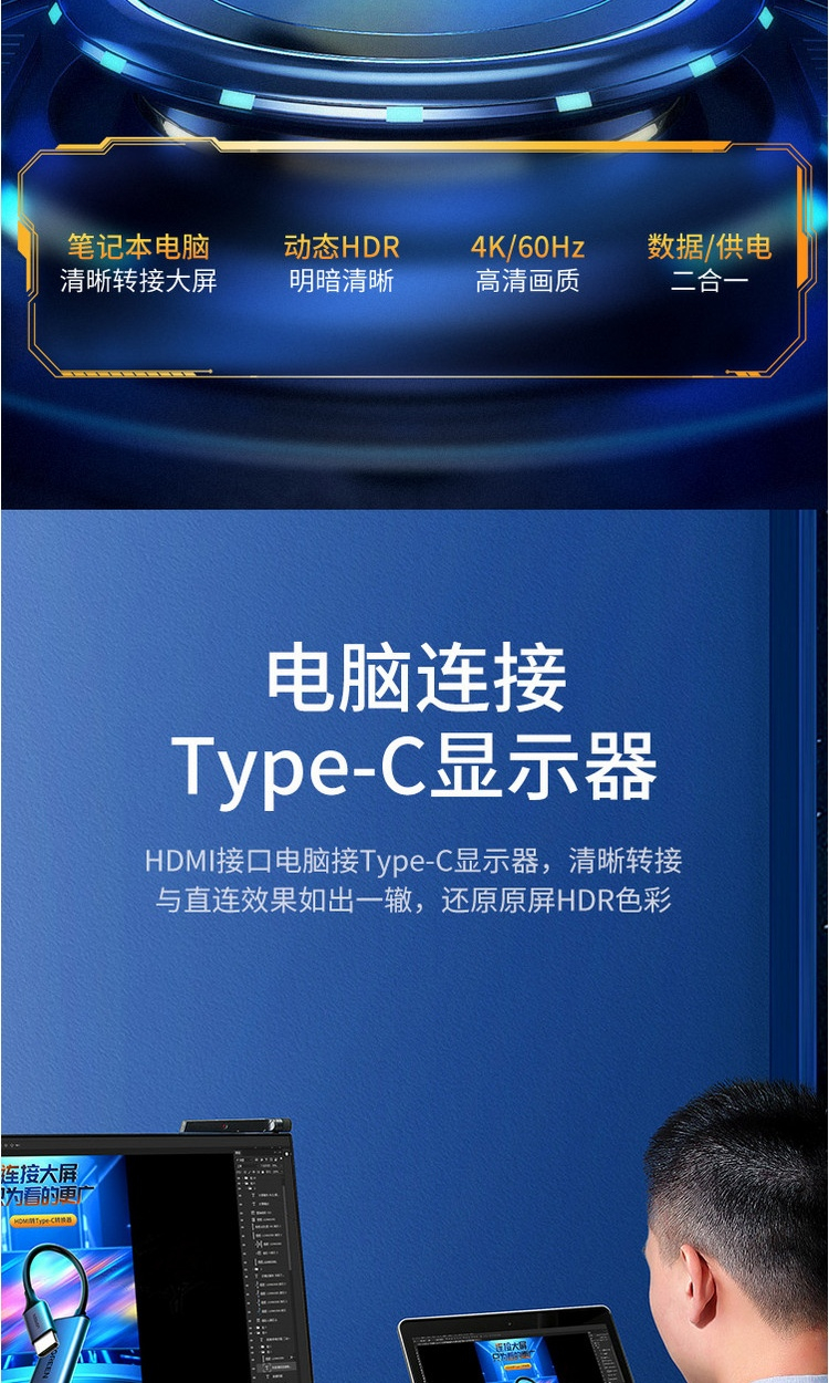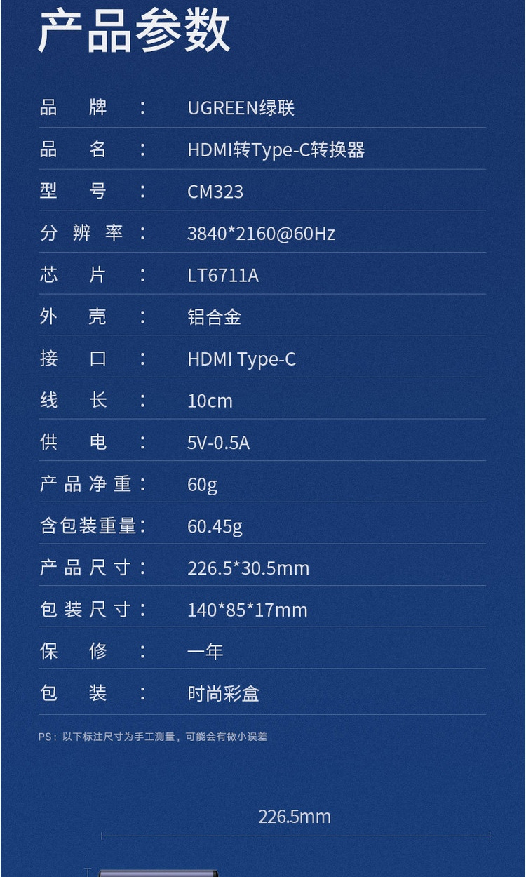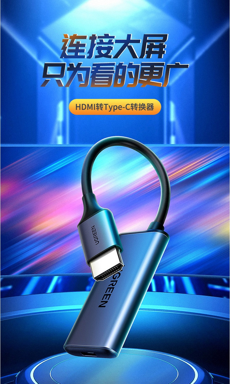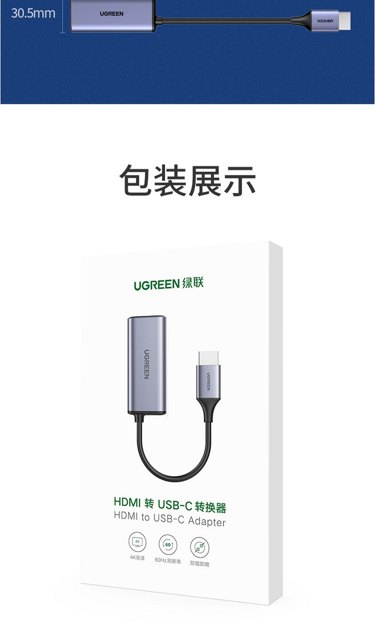 商品名称:绿联 CM323 HDMI公转Type-c转换器 70693 灰色 (单位:个)
