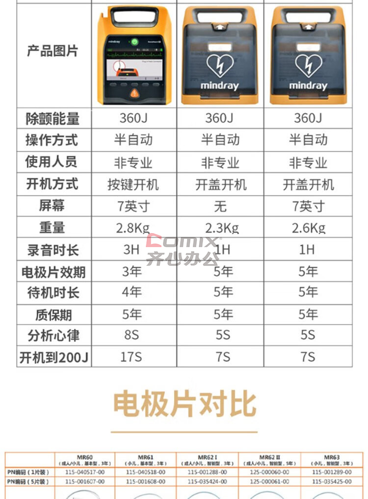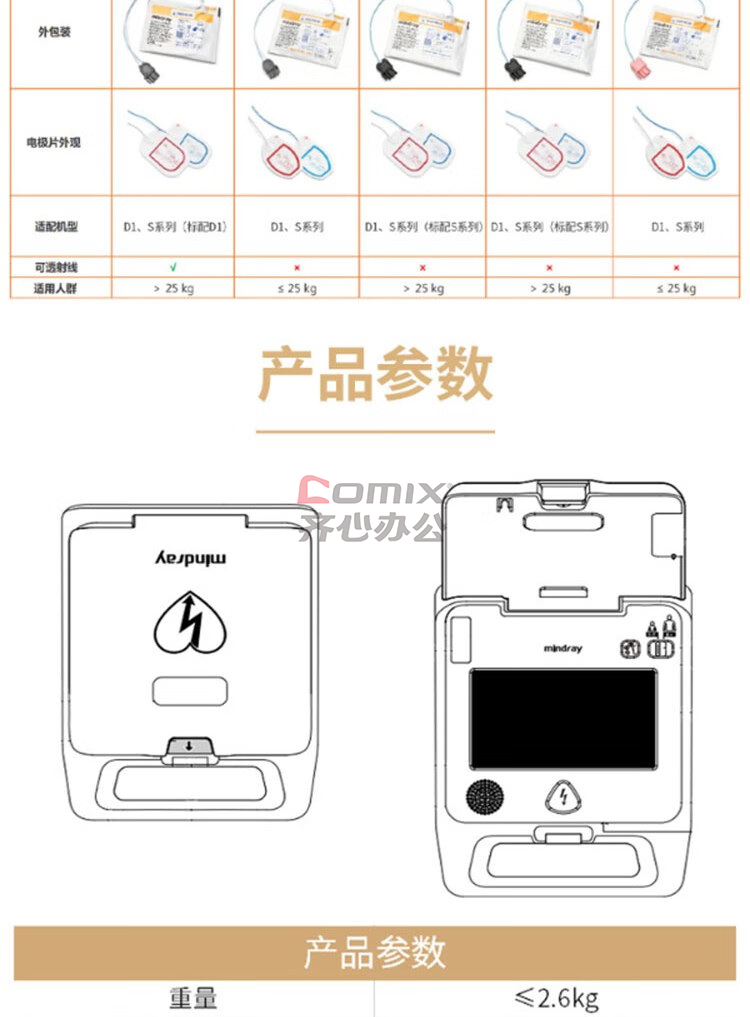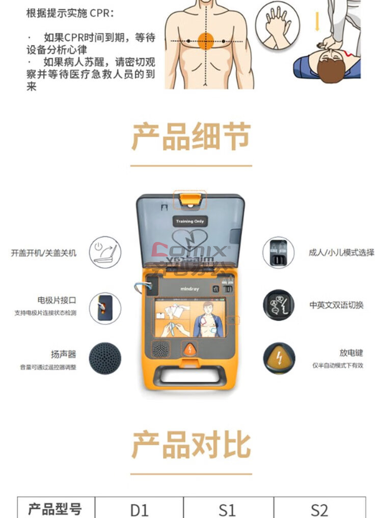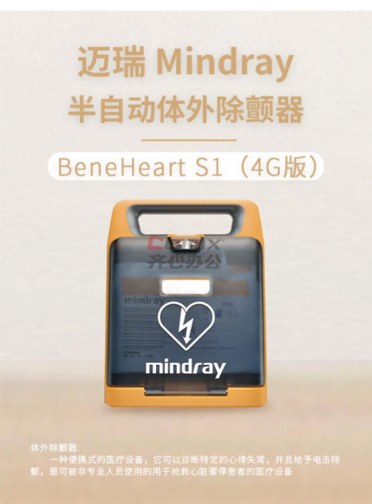 商品名称:迈瑞 BeneHeart S1 4G版 心脏复苏急救便携式 自动化体外心脏除颤仪 单位:台